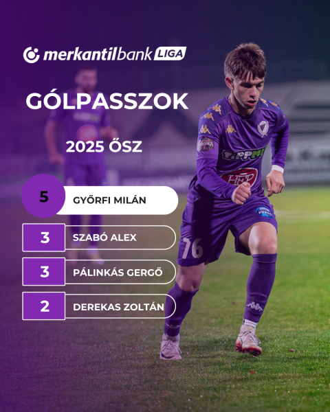A házi gólpasszlista első helyén fiatal szélsőnk 5 előkészítéssel zárt, ami azt egész liga tekintetében a harmadik legjobb mutató, csak négy játékos ért el többet, hárman 7 gólpasszal állnak az első helyen. Győrfi Milánnak korábban erőssége volt az előkészítés, ami szélsőként természetesen nem meglepő, hiszen Pakson 13 tétmeccsen ugyancsak 5 gólpassza volt az előző idényben minden tétmeccset figyelembe véve. Az NB I-ben, az NB II-ben és a Magyar Kupában 26 találkozón 10 gólban vállalt már szerepet ilyen formán játékosunk, akinek a következő lépés már a gólszerzés öröme lehet tavasszal.