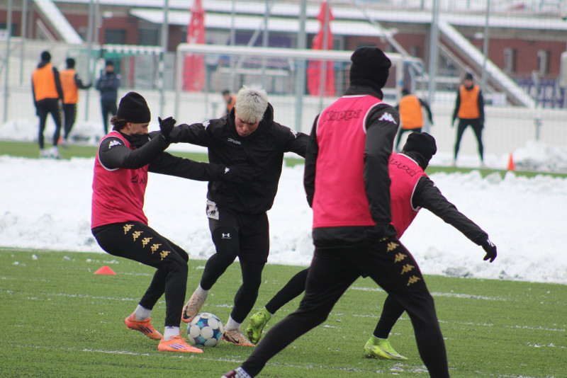A pályakarbantartó csapat folyamatosan dolgozik, így nekik köszönhetően a megtervezett módon zajlik egyelőre a munka a hóhelyzet ellenére is. A hétfő délutáni tréninget szakadó hóesésben csinálta végig csapatunk, de kedden már gyakorlatilag hibátlan minőségű műfüves pályán edzettek a játékosok. Kedd délelőtt inkább a játéké volt a főszerep, mely során újabb két saját nevelésű fiatal, Kálmán Simon és Balis Gergő kapott lehetőséget arra, hogy az NB II-es csapattal edzhessen.