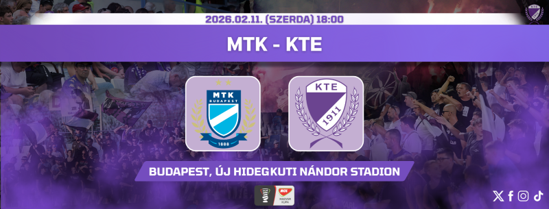 A KTE már rögtön az elején megmutatta, hogy képes bravúrokra a sorozatban, hiszen csapatunk az Újpest búcsúztatásával kezdett, majd ezt követően a Tiszafüredet is legyőzte 2–1-re. Az MTK-hoz hasonlóan egy bajnoki vereség után lépünk pályára szerdán, hiszen vasárnap 2–0-ra kikaptunk a Vasastól. A MOL Magyar Kupában is a győzelem a cél, ugyanakkor vezetőedzőnk előre jelezte, hogy a sűrű programra tekintettel a frissesség fontos szempont lesz a kezdőcsapat összeállításakor.