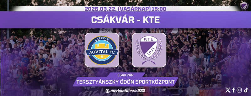 A Merkantil Bank Liga 23. fordulójában Csákváron lép pályára a KTE vasárnap 15:00-kor. Közvetlen riválishoz látogatunk, mely az idény egyik pozitív meglepetése.