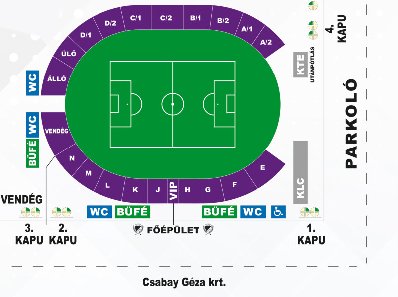 Jegyeket a helyszínen bármelyik pénztárban bármelyik lelátóra lehet vásárolni (például a 2-es pénztárban is meg lehet venni a városi oldalra szóló belépőt), de a jegyvásárlásnál feltétlenül figyeljenek arra drukkereink, hogy melyik kapu és oldal felől közelíthető meg szektoruk, ugyanis csak ennek megfelelően működnek a jegyleolvasók. A hazai szektorokat az 1-es, 2-es („A” lelátó) és 4-es kapu jelöli, utóbbi a városi oldal, a „B” lelátó. A jegyeket nem kell bedugni az automatába, elég csak a vonalkódot lehúzni a leolvasó előtt. Az online vásárolt jegyeket telefonon keresztül is be lehet mutatni.